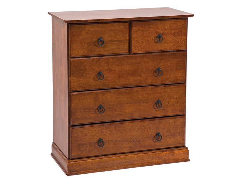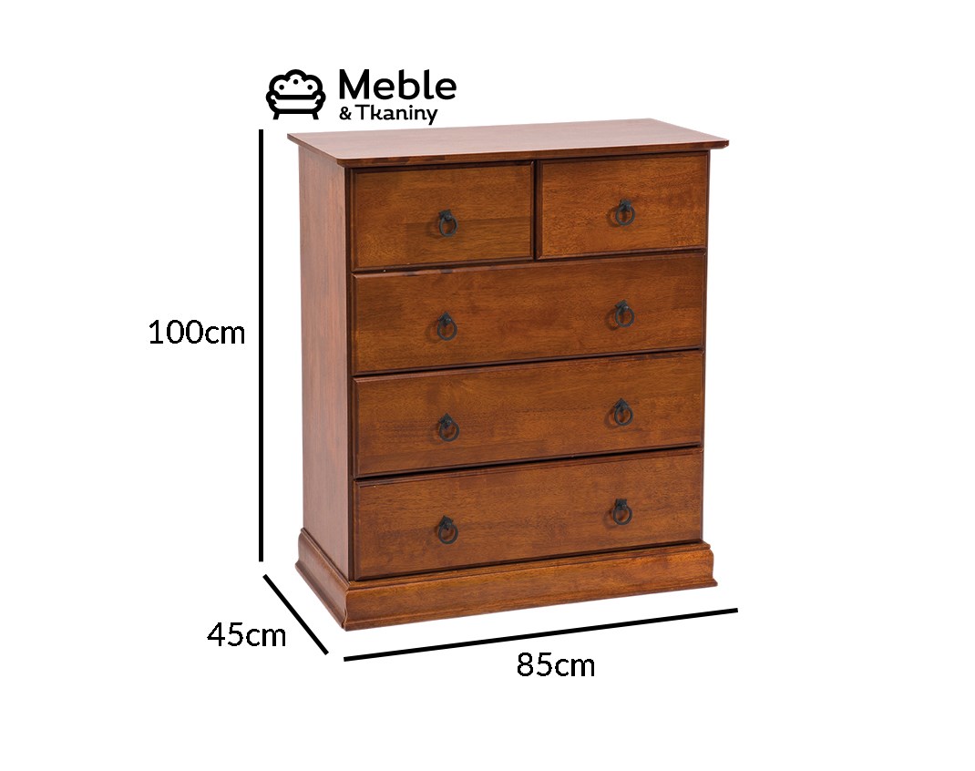 Komoda BOSTON stanie się nieodłącznym elementem Twojej sypialni!Jest to bardzo stylowa i elegancka komoda do sypialni.wykonana jest z solidnego drewna, dębu malezyjskiego w kolorze czereśni antycznej, dzięki temu prezentuje się niezwykle elegancko. Jest to doskonałe rozwiązanie zarówno do minimalistycznie zagospodarowanych przestrzeni jak również do przytulnych i komfortowych mieszkań. O komforcie i przydatności posiadania takiego mebla nie trzeba nikogo przekonywać. Wyposażona jest w kilka dużych, łatwo dostępnych szuflad, które są w stanie pomieścić w sobie najpotrzebniejsze drobiazgi, które zawsze powinny być w zasięgu ręki.